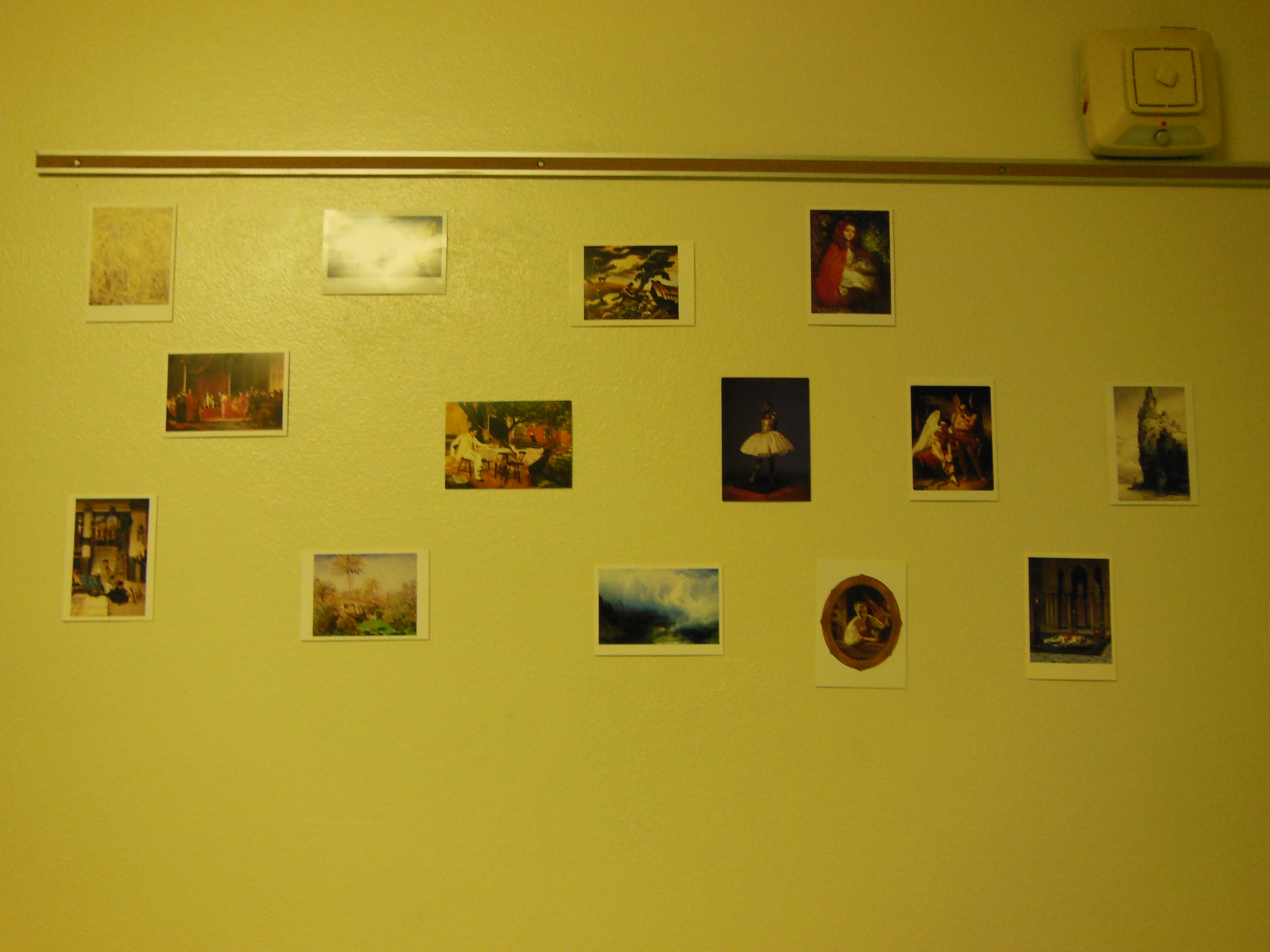 Okay, this isn’t the best picture, but let me explain. Those are all postcards that I got at the actual Joslyn Art Museum. I have my favorite two pictures from the museum up, along with several other pictures from there that I really like. When I look at them, it’s like getting a moment at home.