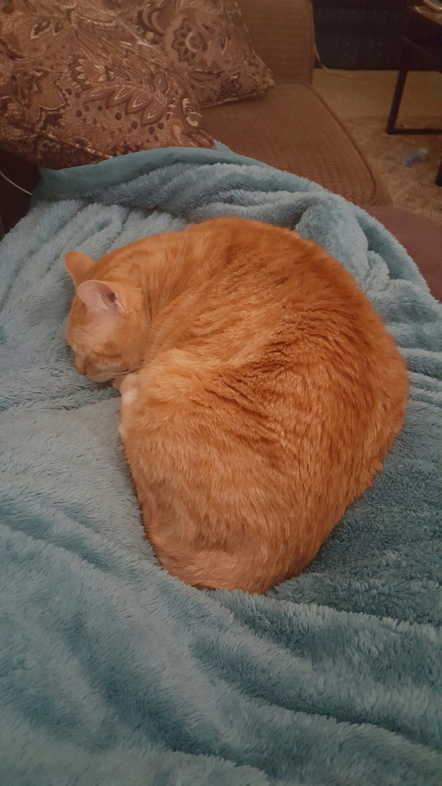 -At least the cat is cuddling with me.